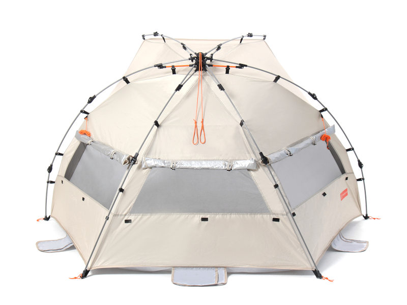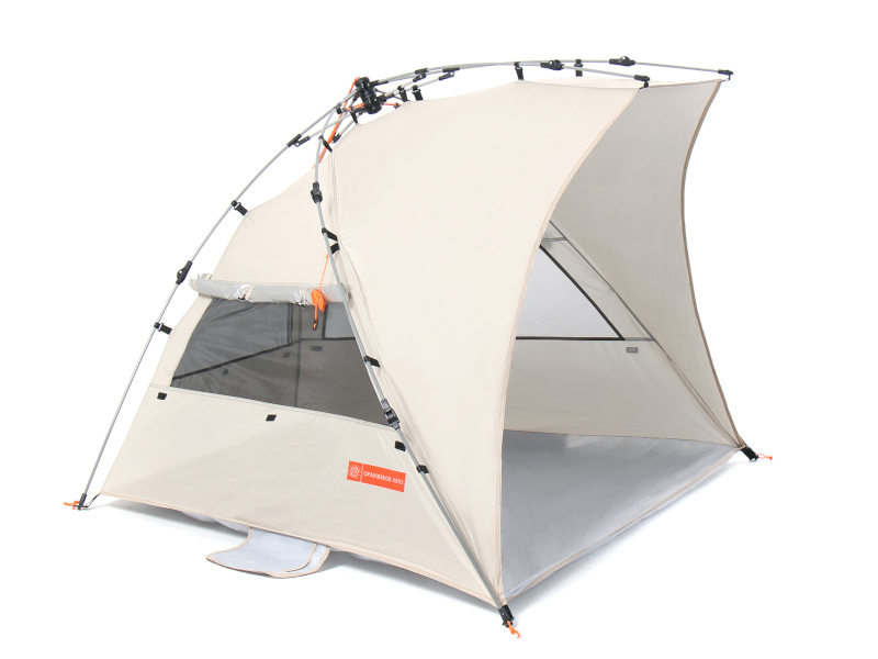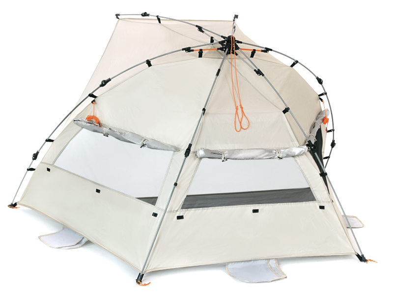 Классика – пляжная палатка традиционной конструкции с открытым входом и тремя стенками, сводящимися в купол в горизонтальной плоскости. Эта модель подходит для семьи из двух взрослых и двух детей. Это быстрая в установке, компактная и легкая для переноса пляжная палатка, в которой исключен любой необязательный функционал, который мог бы привести к утяжелению конструкции.