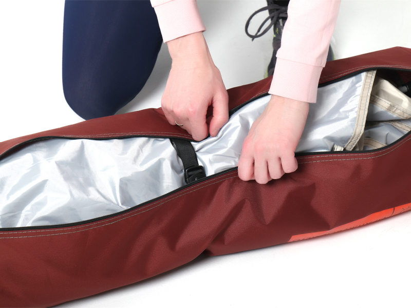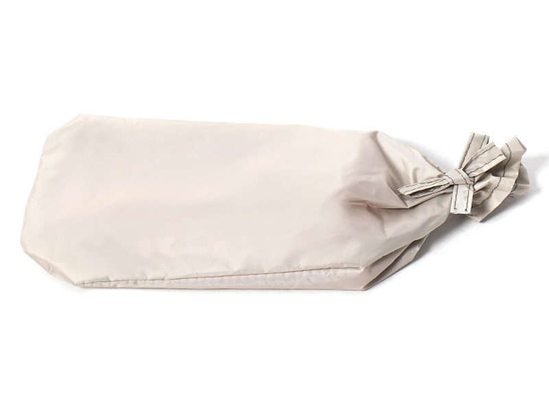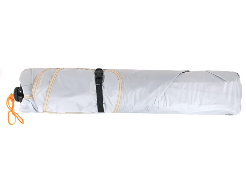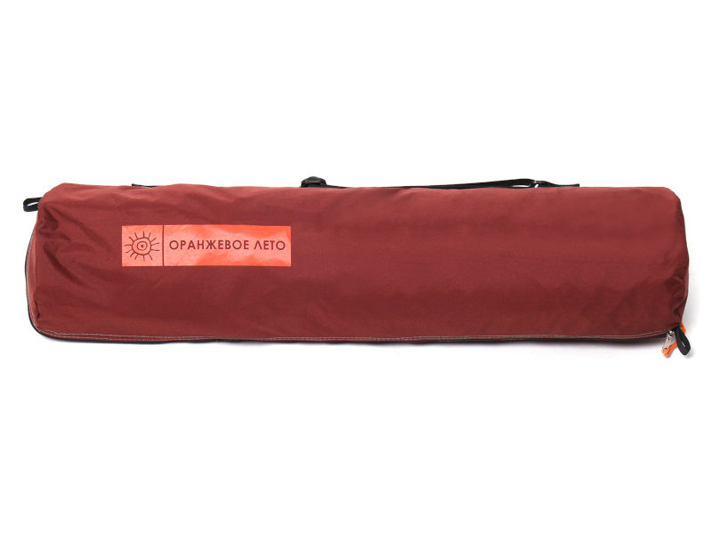 Собранная палатка скрепляется ремешком-стяжкой и складывается в сумку свободного кроя. Размеры сумки позволяют упаковывать в нее палатку быстро без необходимости тратить время на плотную скрутку палатки.