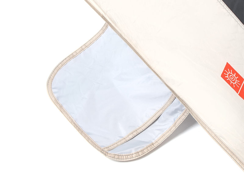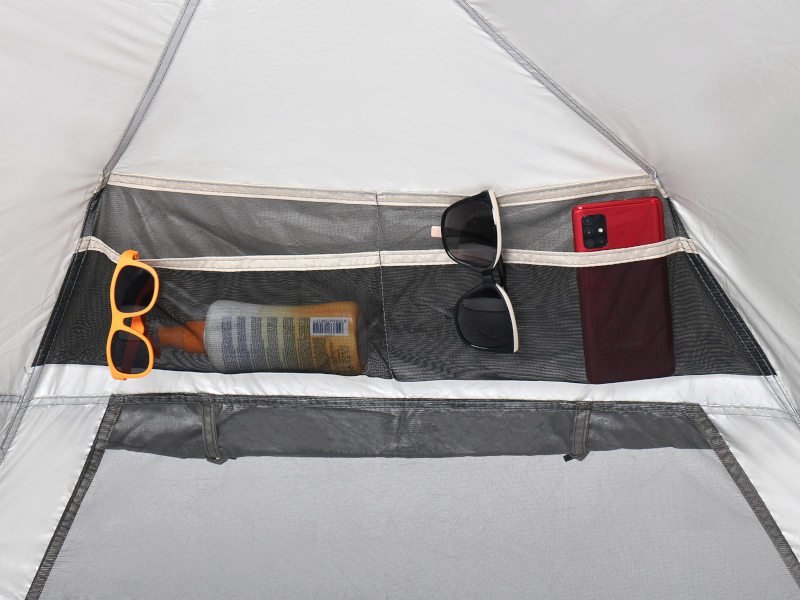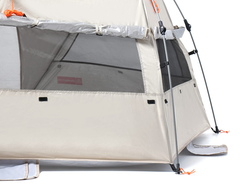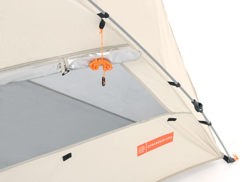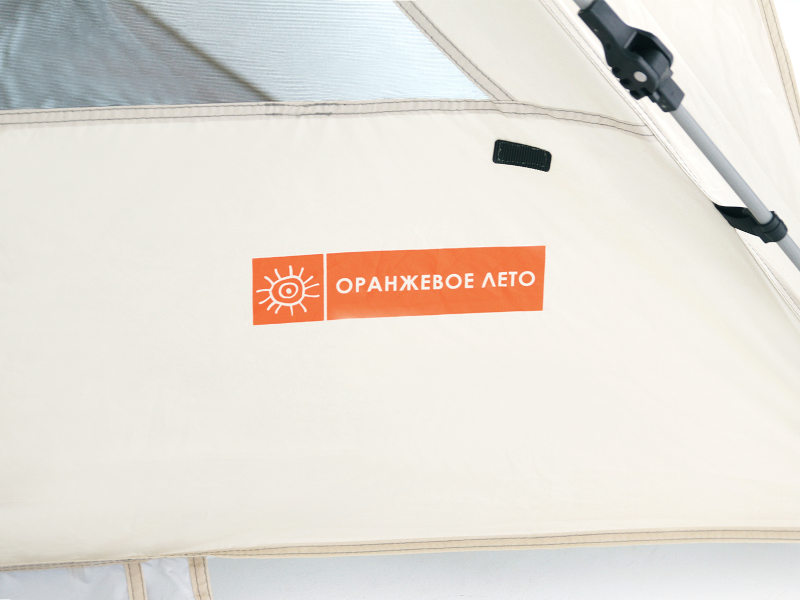 В качестве материала шатра использован высококачественный полиэстер Таффета с покрытием PU Silver. Этот материал характеризуется легкостью, устойчивостью к истиранию, простотой ухода, а также он обеспечивает отражение более 98% ультрафиолетового излучения. На задней и боковых стенках палатки предусмотрены сетчатые панорамные окна со шторками, позволяющие регулировать микроклимат внутри палатки. Пол палатки изготавливается из полиэстера Оксфорд – материала с повышенной износостойкостью и устойчивостью к загрязнениям.