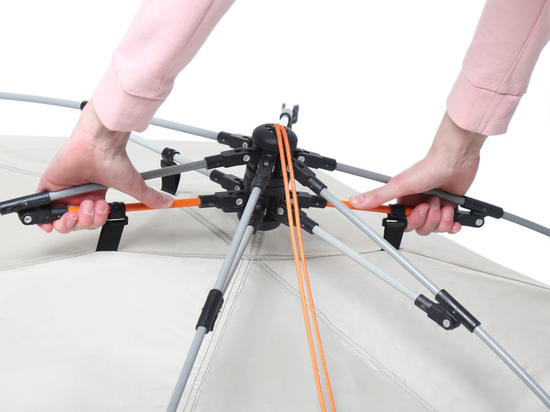 Основой конструкции пляжной палатки Классика служит каркас зонтичного типа. Материалы каркаса – стекловолоконные дуги и пластиковые шарниры, устойчивые к постоянному воздействию ультрафиолета и рассчитанные на длительную эксплуатацию, в т.ч. при значительных ветровых нагрузках. Зонтичный механизм прост в использовании, благодаря чему установка и сборка палатки требуют минимального времени.