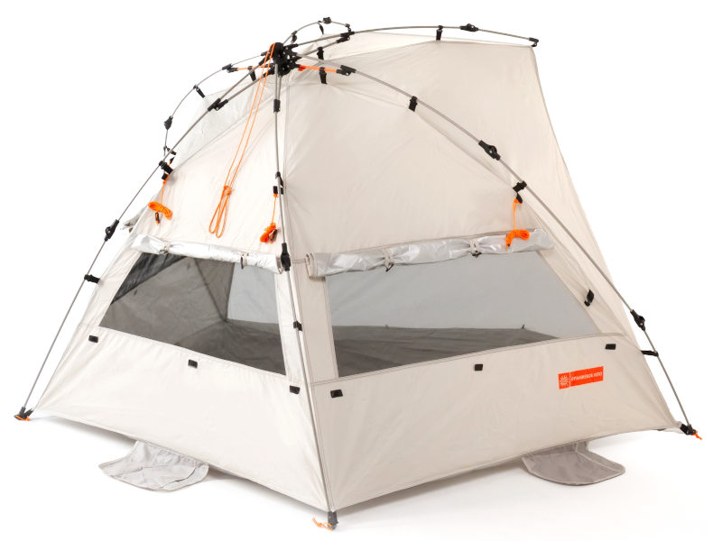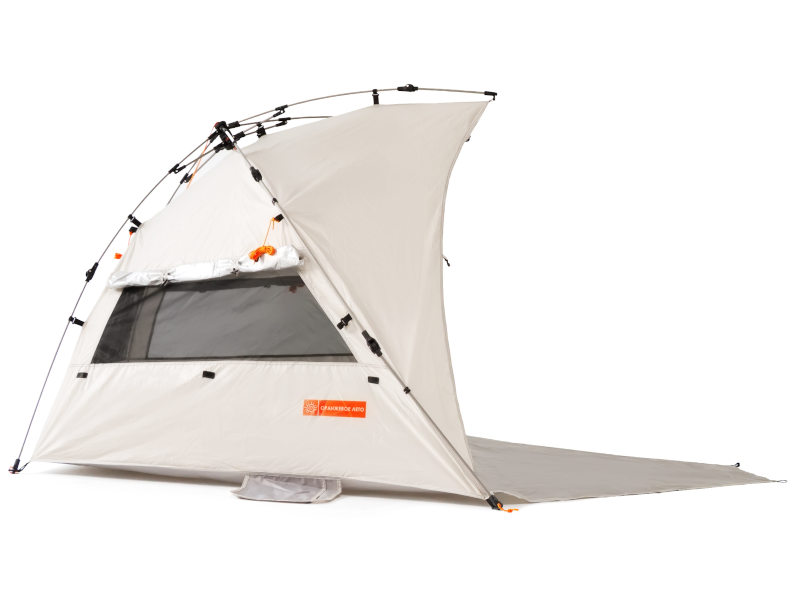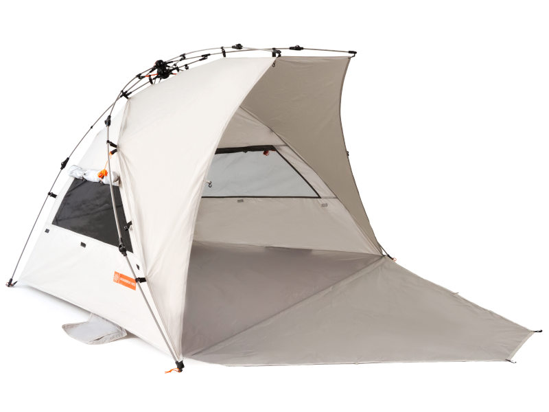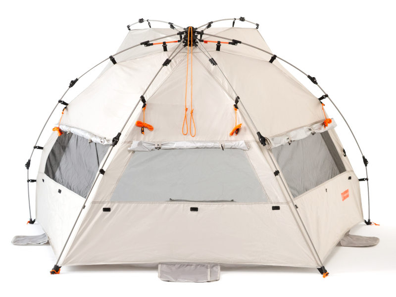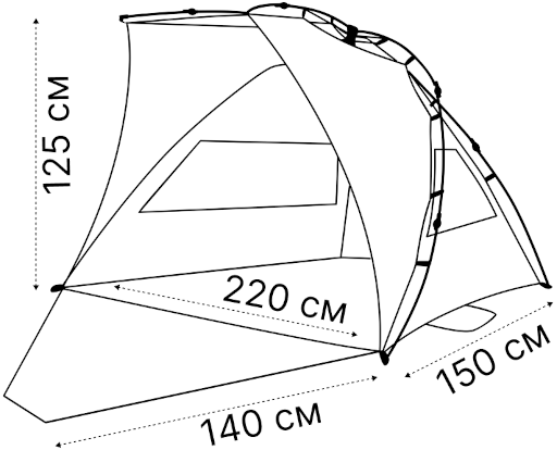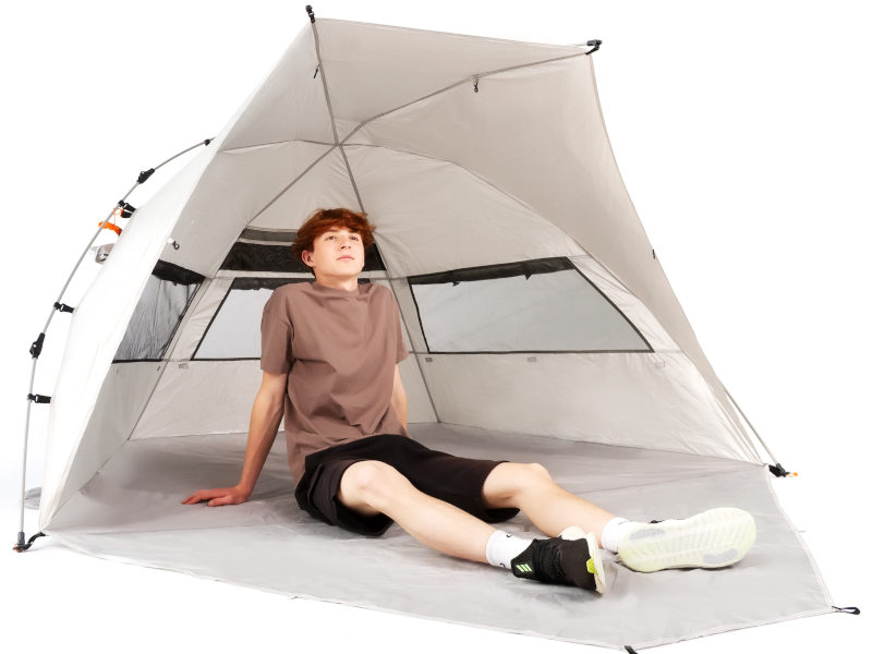 Пляжная палатка Комфорт обеспечивает полноценную защиту от ультрафиолета максимальной категории UPF50+, сочетает в себе легкий конструктив, удобный механизм и компактный размер в собранном виде. В то же время она достаточно просторна для семьи из двух взрослых и двух детей. Использование зонтичного механизма в конструкции каркаса позволяет устанавливать и собирать палатку за пару минут.